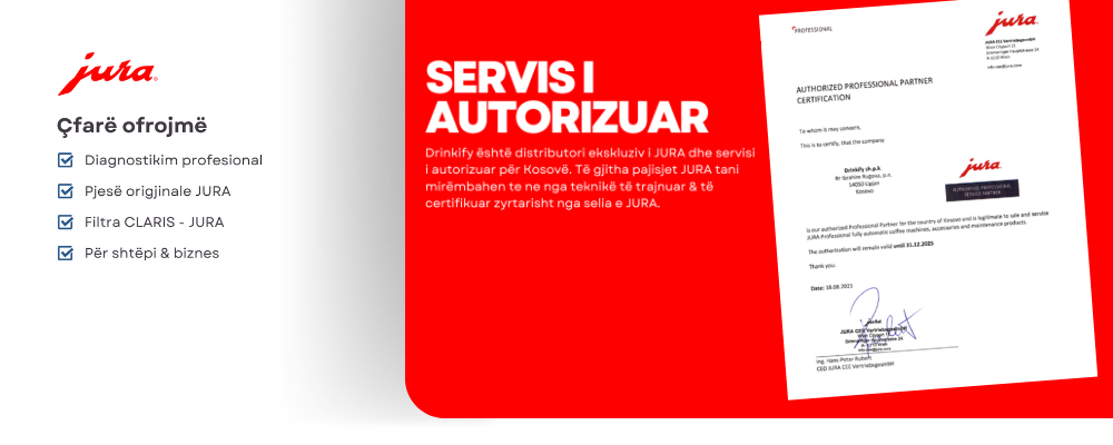 JURA përfaqëson kulmin e inovacionit, elegancës dhe cilësisë premium në botën e makinave të kafesë. Me mbi tetë dekada përvojë, brendi ka transformuar mënyrën si shijohet kafeja, duke kombinuar inxhinierinë zvicerane me dizajn minimalist dhe teknologji të avancuar për një eksperiencë të pakrahasueshme – në shtëpi apo në zyrë.